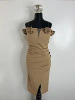 پیراهن مجلسی دکلته میدی گل برجسته